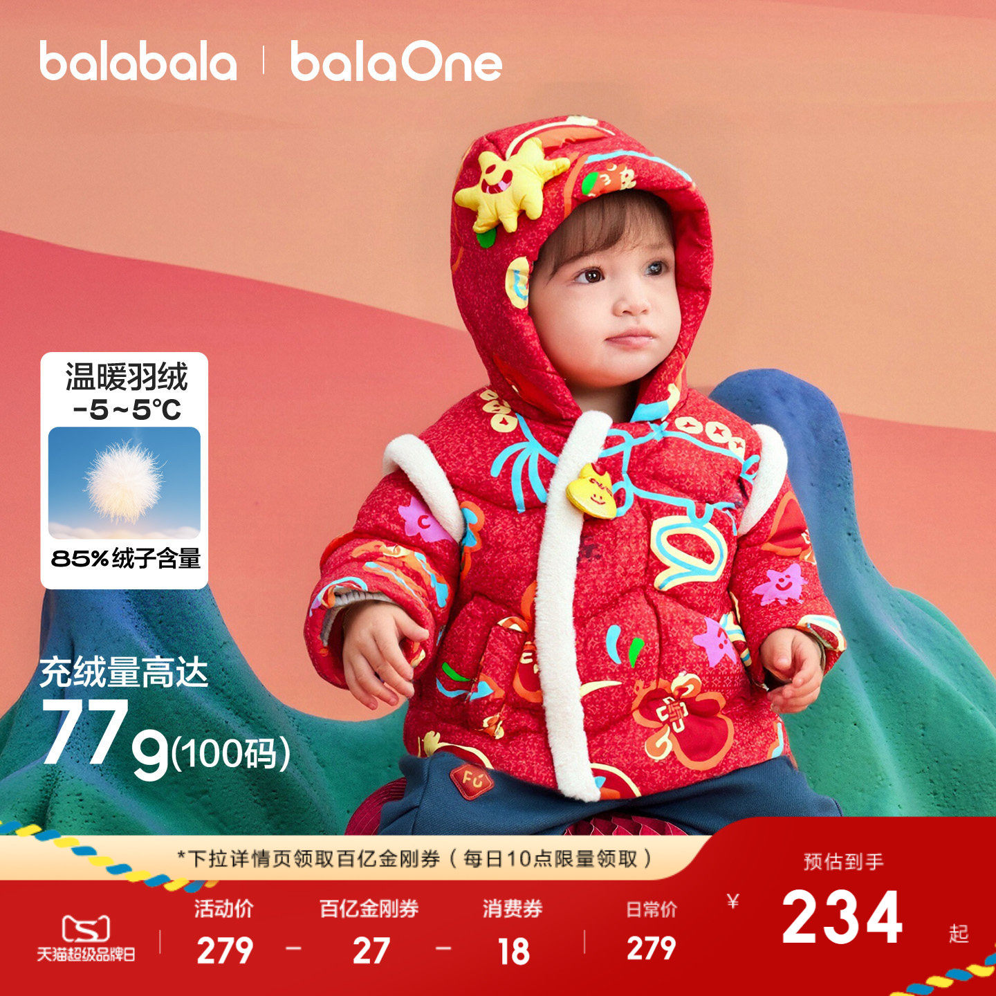 巴拉巴拉童装宝宝羽绒服婴儿衣服儿童外套2026新冬保暖红色拜年服