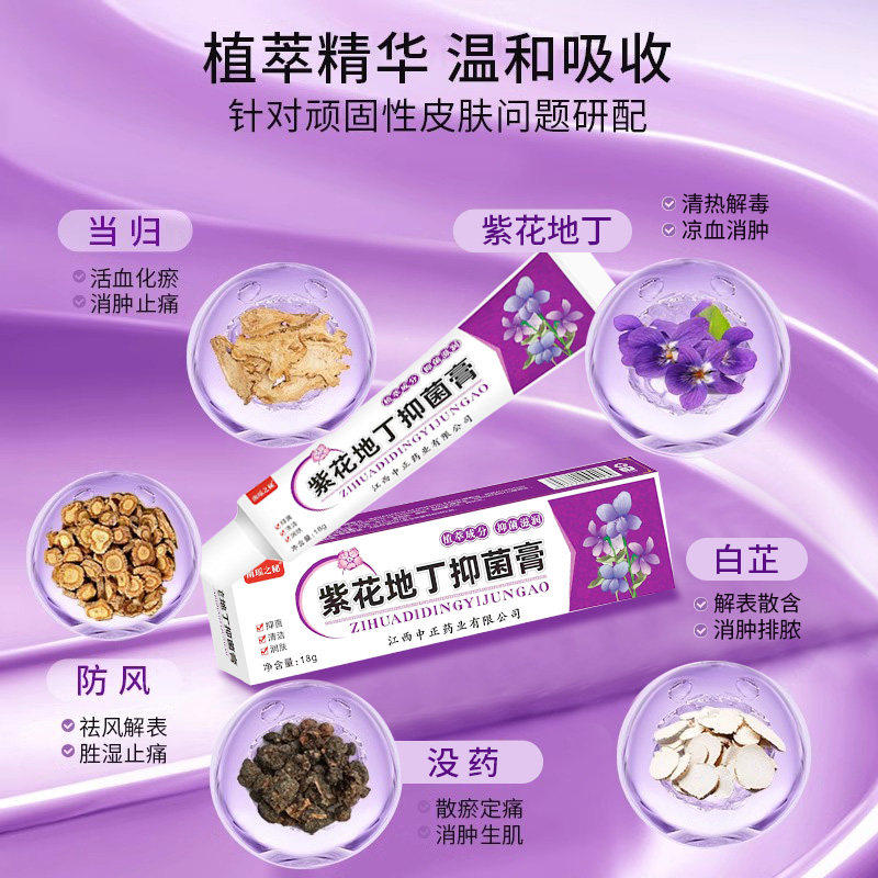 紫花地丁抑菌膏止痒透皮肤瘙痒外用草本乳膏药官方旗舰店蚊虫叮咬