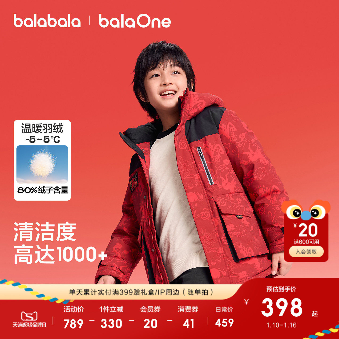 巴拉巴拉童装儿童羽绒服男女童2026新冬装保暖外套防护红色拜年服