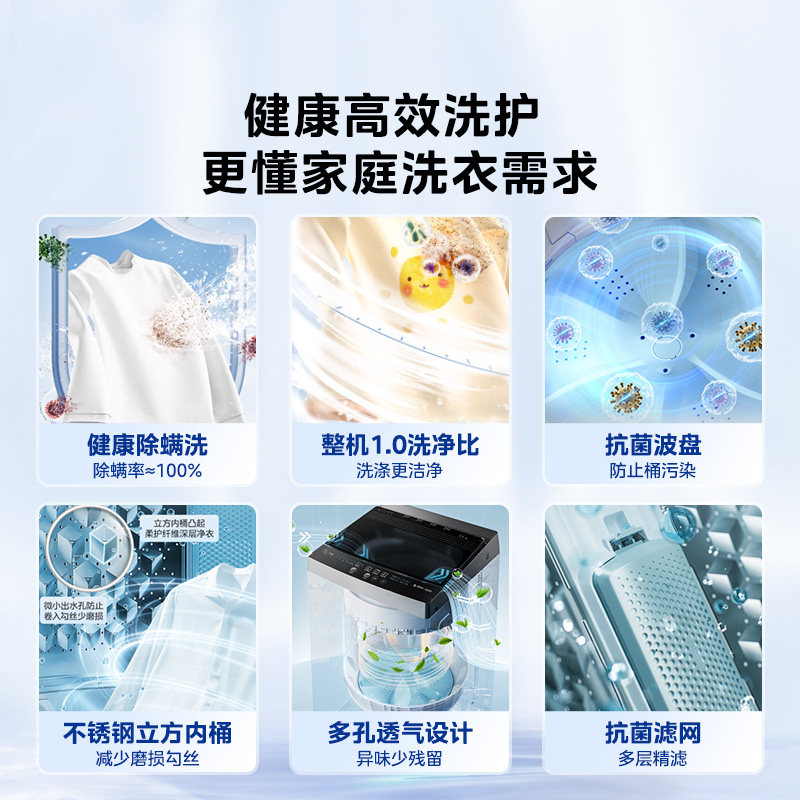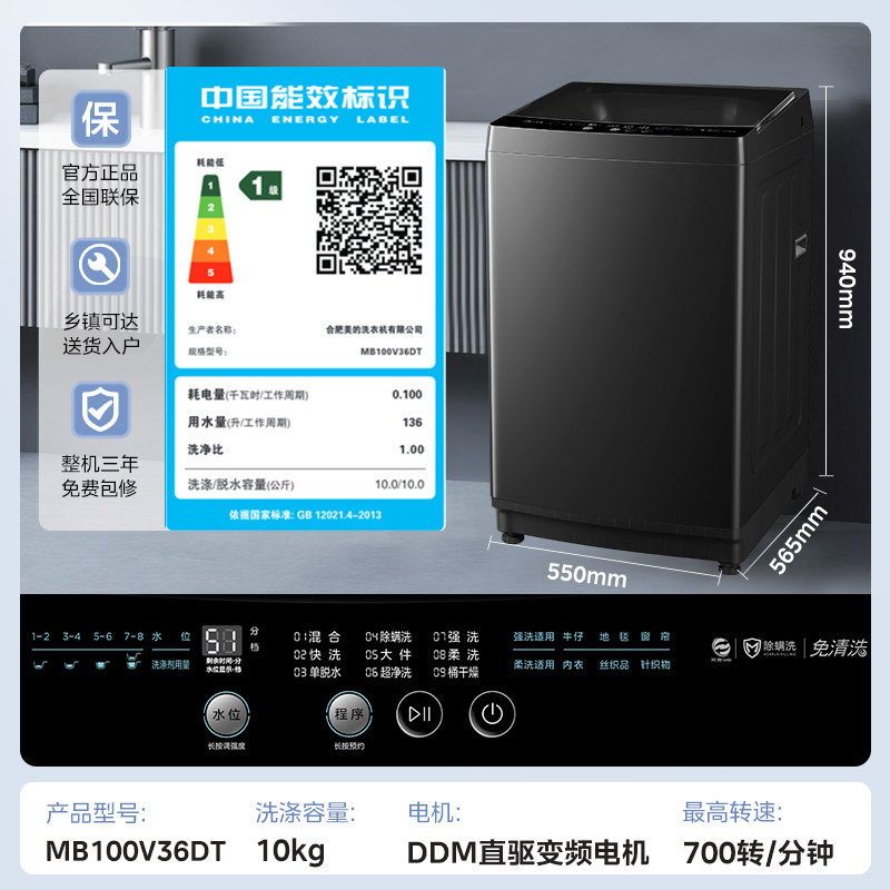 美的12/10KG洗衣机直驱变频6/8/9公斤波轮一级家用宿舍全自动租房