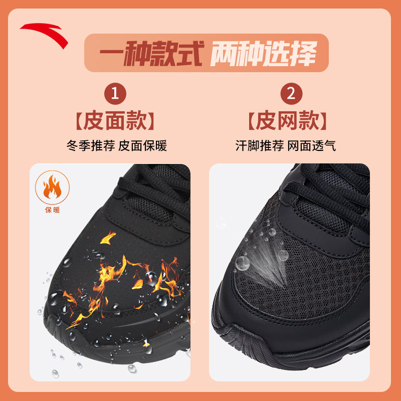 安踏男鞋运动鞋男款冬季新款官方旗舰正品黑色皮面男士跑步鞋子男