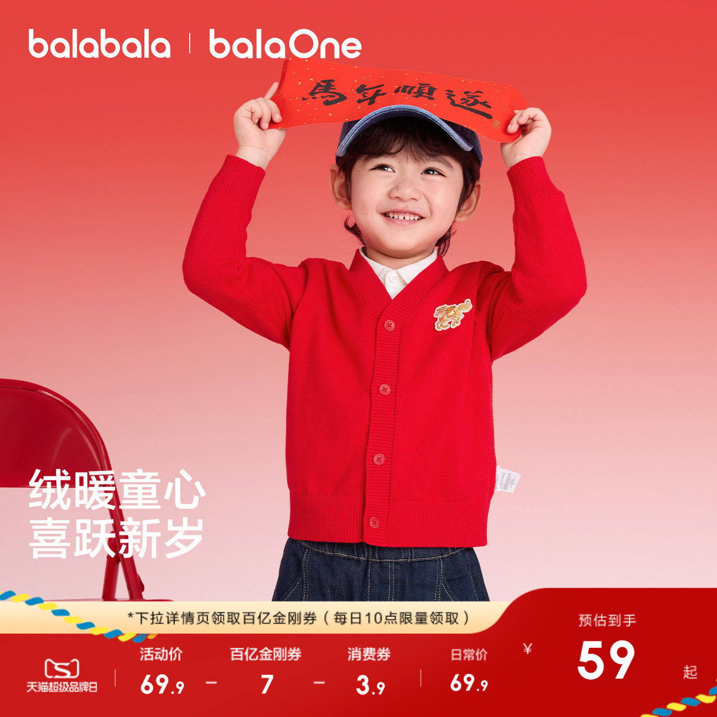 巴拉巴拉童装儿童毛衣男女童2026新款秋冬装针织开衫红色拜年服潮