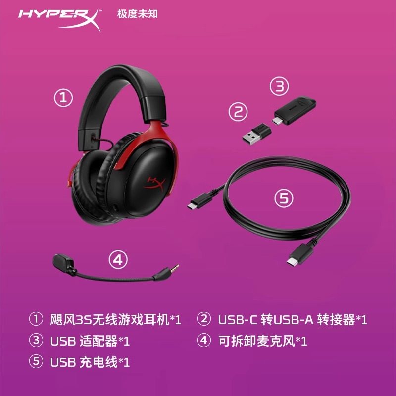 HyperX极度未知 飓风3S无线耳机头戴式蓝牙2.4G电竞游戏电脑耳麦