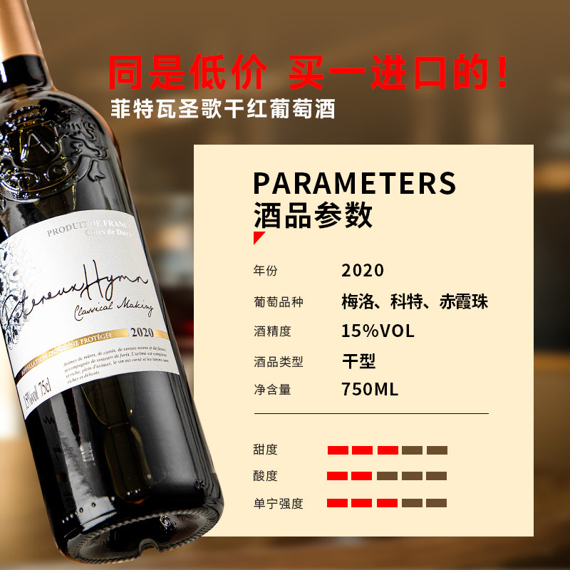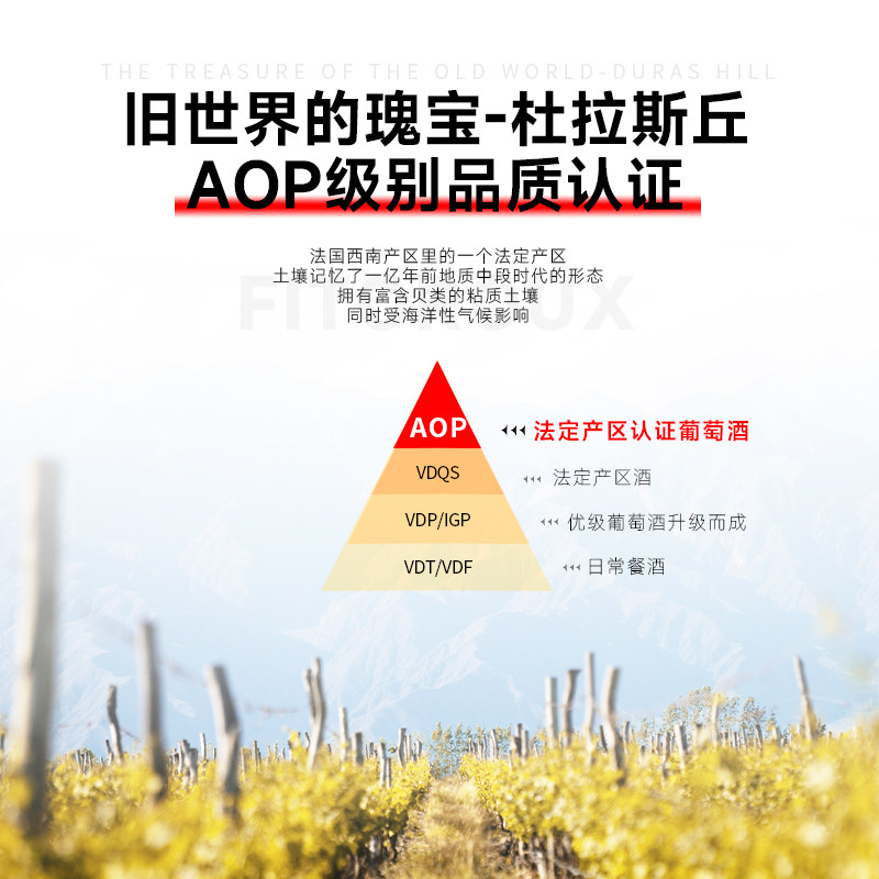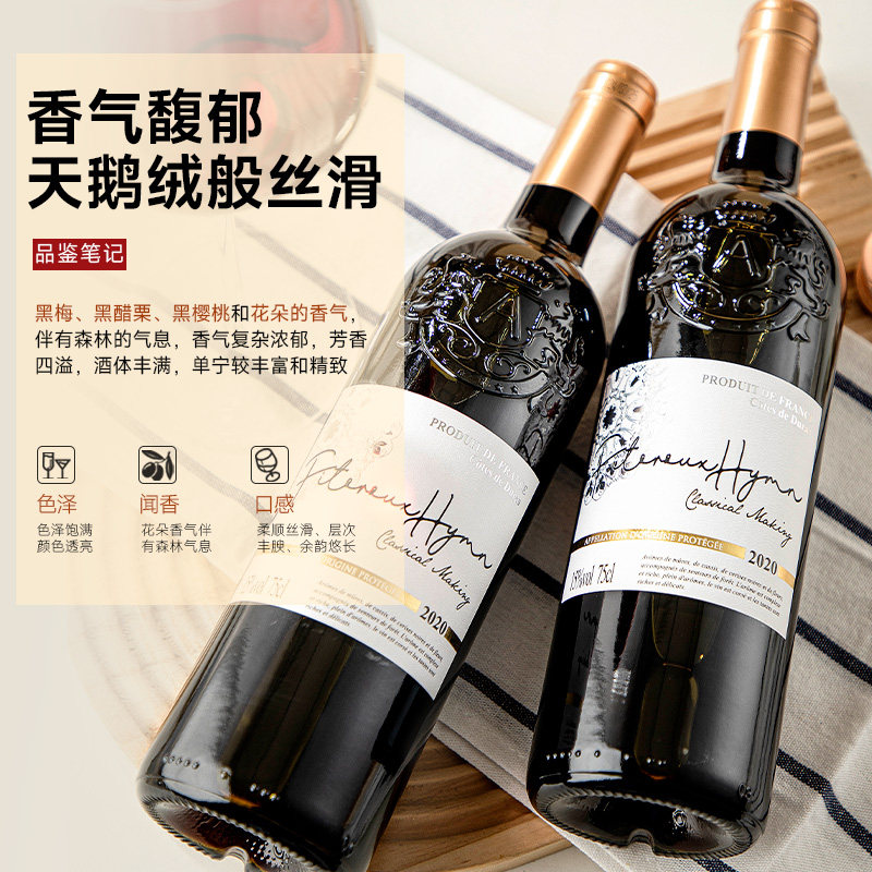 法国进口红酒AOP级干红葡萄酒15度自饮宴请聚会原酒进口多规格