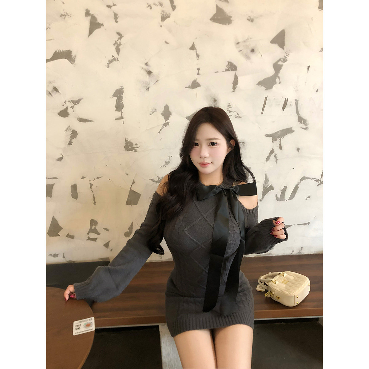 佳佳【南法千金】微胖大码女装针织连衣裙秋冬新款裙子露肩包臀裙