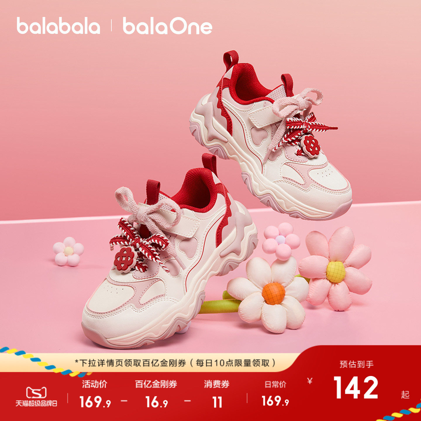 巴拉巴拉童鞋儿童运动鞋女童跑步鞋秋冬2026新款防滑鞋子红拜年鞋