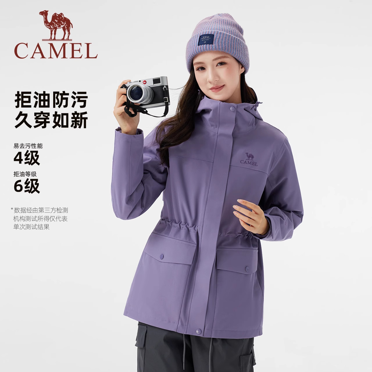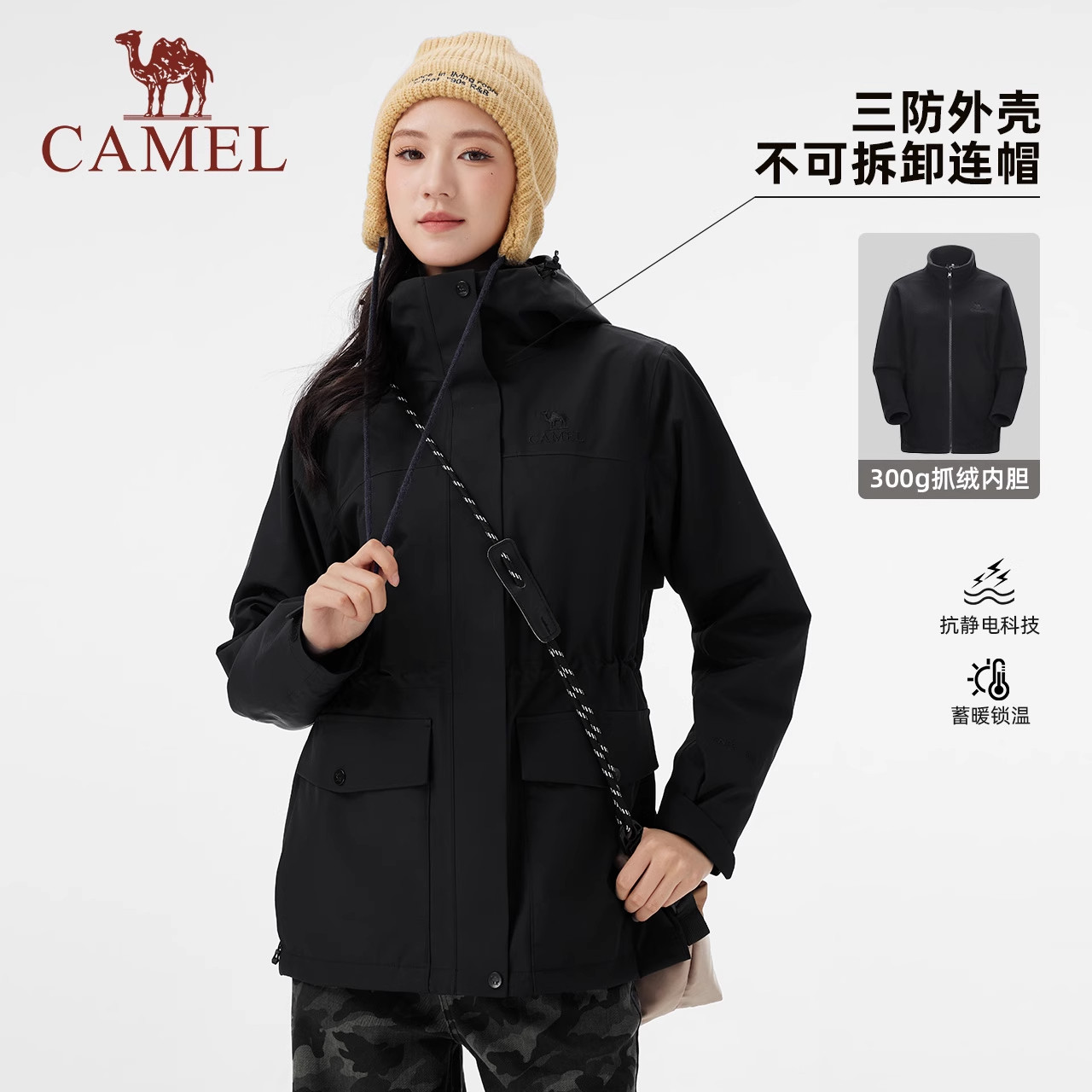 骆驼女装冲锋衣三合一外套女收腰2025新款夹克户外防风防水登山服
