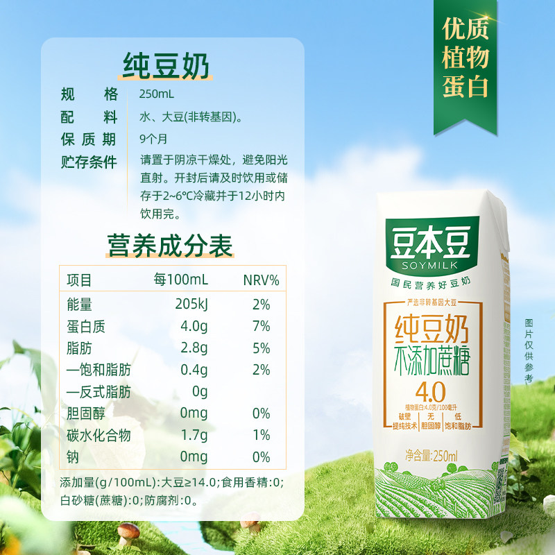 豆本豆纯豆奶250ml*12盒/整箱装无添加蔗糖植物早餐奶原味黑豆