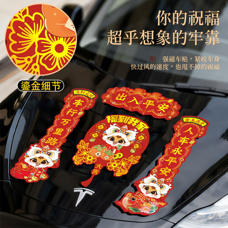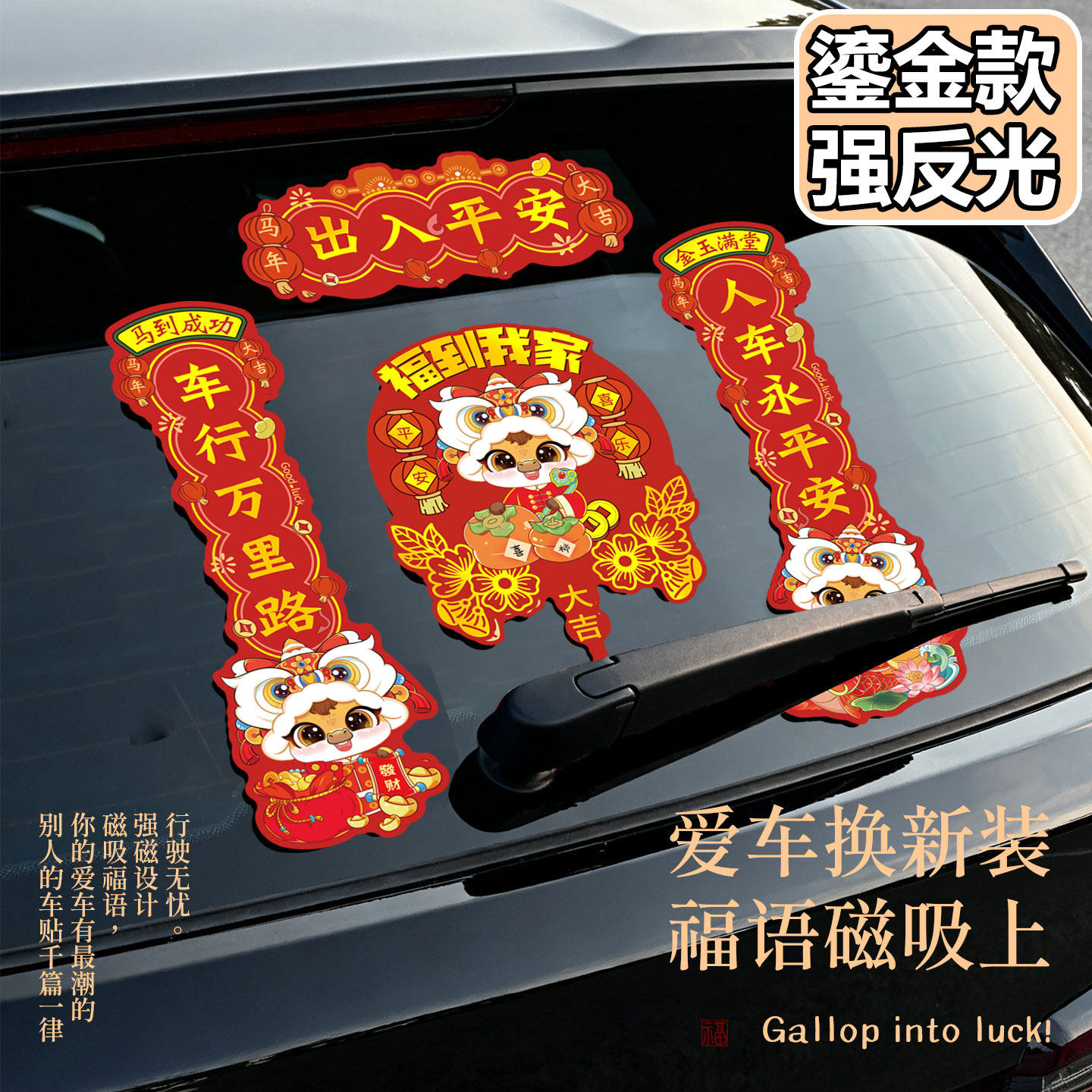 2026汽车春联磁吸烫金马年磁贴不留胶新年对联车用春节过年装饰