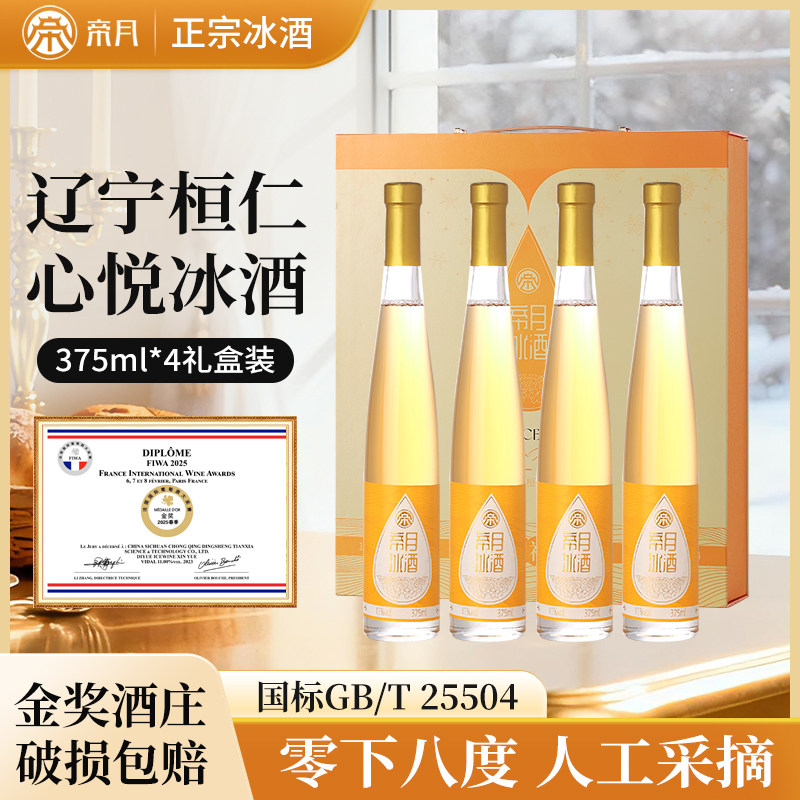 帝月辽宁桓仁心悦冰酒甜白冰葡萄酒威代尔甜型果酒红酒礼盒装送礼