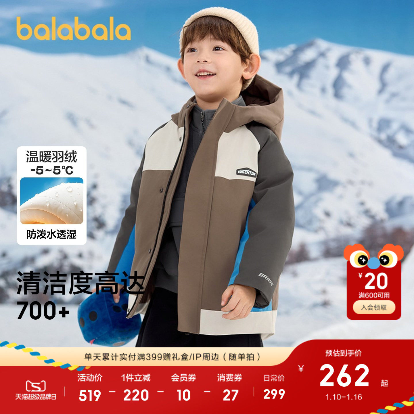 巴拉巴拉童装男童羽绒服冬装儿童外套拼色连帽户外风