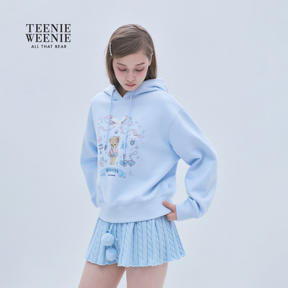 TEENIEWEENIE bearnova25冬新款女装甜美俏皮蝴蝶结印花连帽卫衣