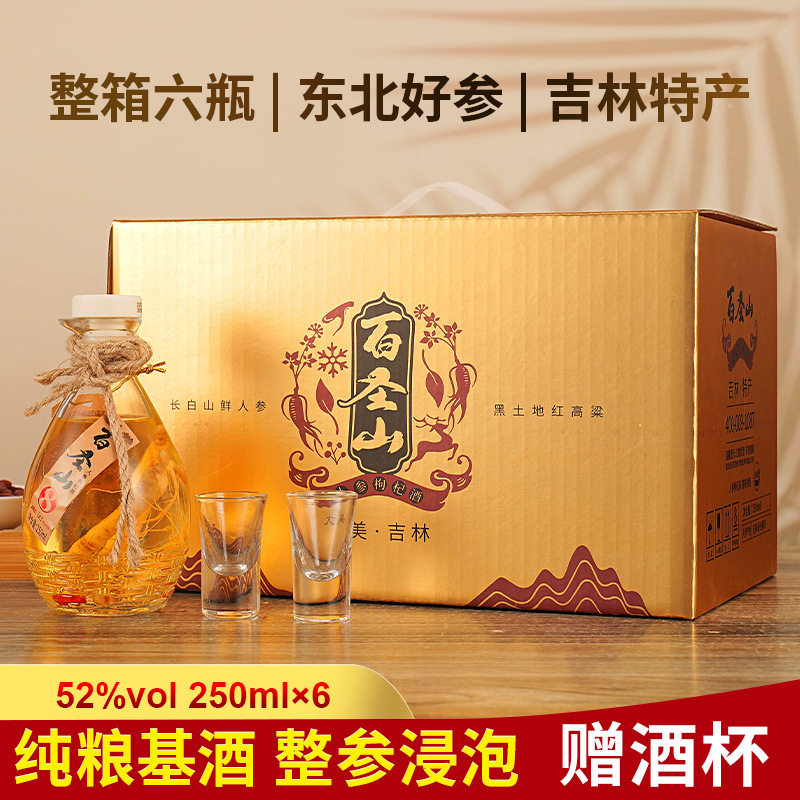 正品百圣山人参枸杞酒东北特产小酒42度52度白瓶养生酒送礼礼盒装