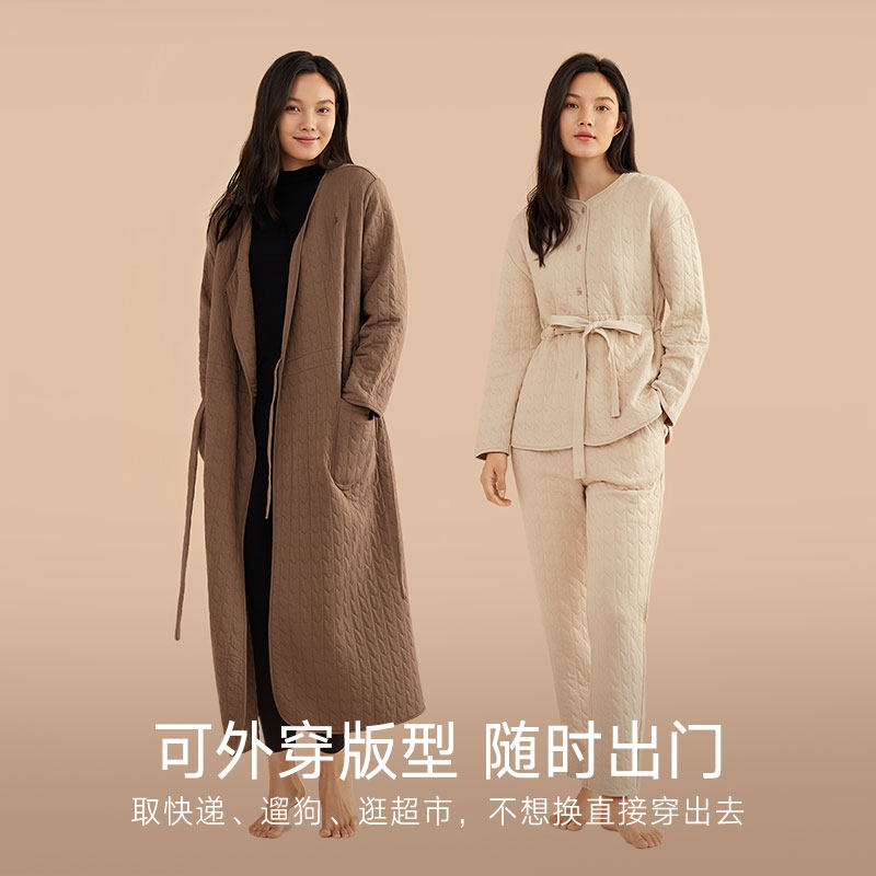 曼妮芬棉质生活冬季三层全棉睡衣女居家可外穿不易起静电棉家居服