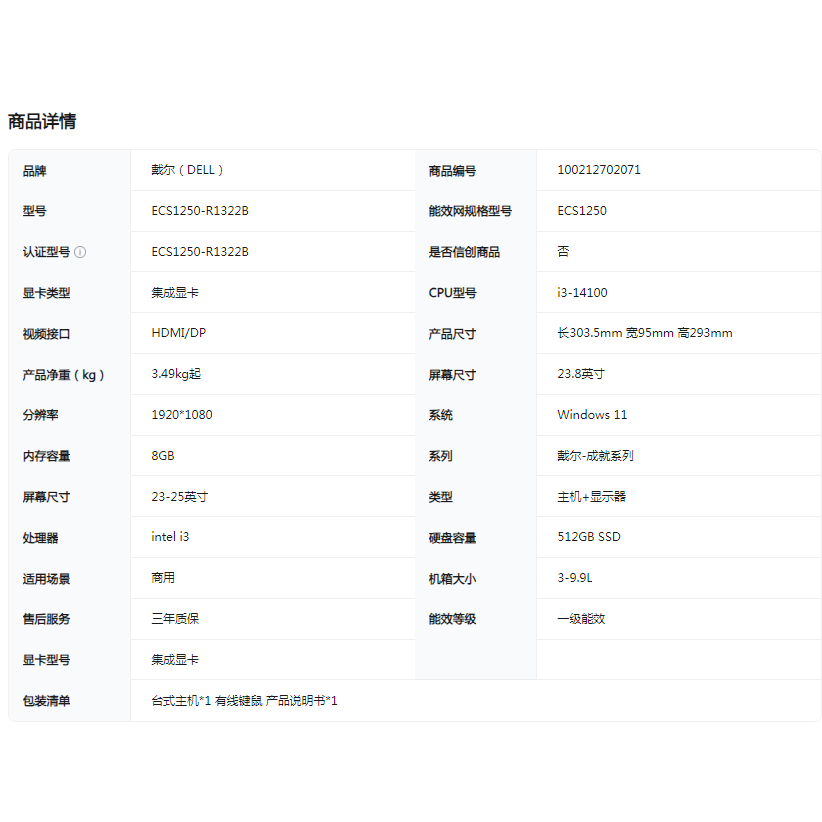 戴尔I5+14代2025款 成就办公专业升级版ECS1250商用台式电脑主机