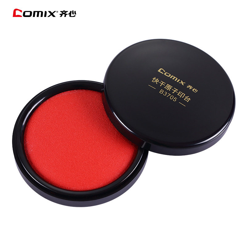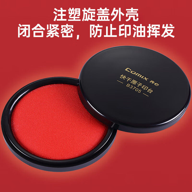 齐心B3705印台圆形快干印泥85mm红色财务办公用印台可加印油印章