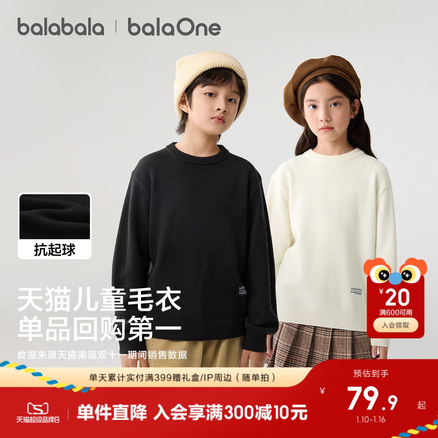 巴拉巴拉童装儿童毛衣男童女童2025新款秋冬宝宝套头毛衫针织打底
