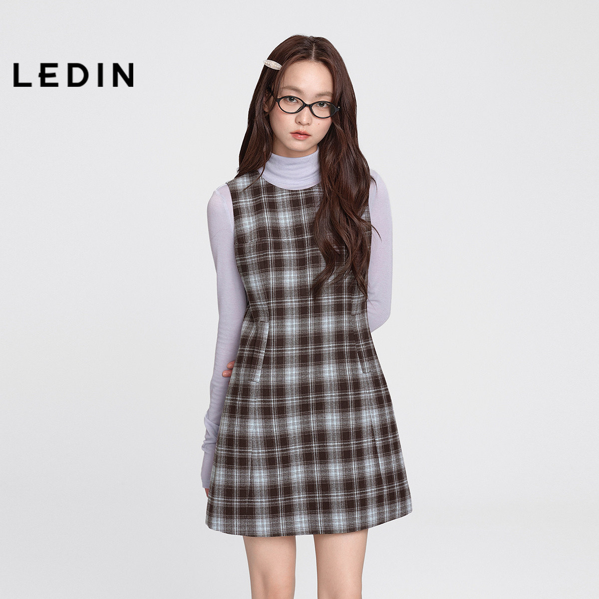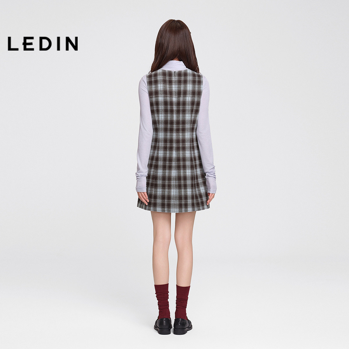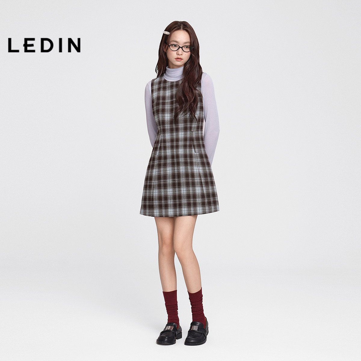 【商场同款】乐町磨毛格纹呢A版连衣裙女装新款保暖裙子C1FAF4366