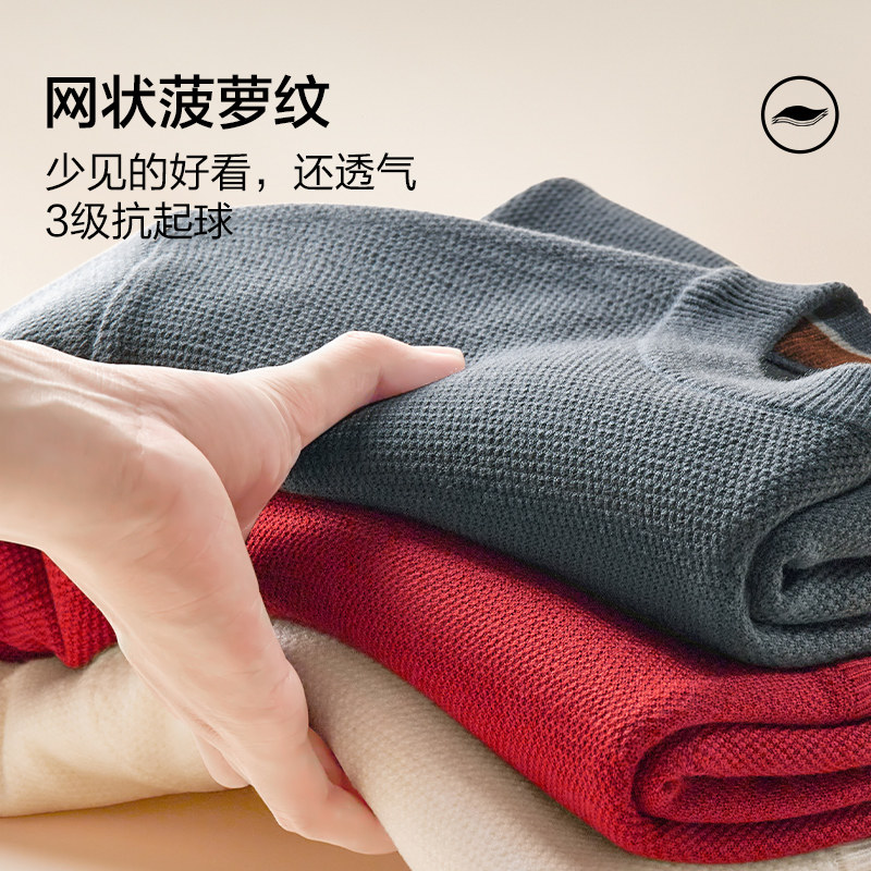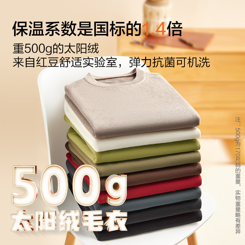 【牛奶绒】红豆男装加绒毛衣2025冬季太阳绒加厚圆领套头针织衫