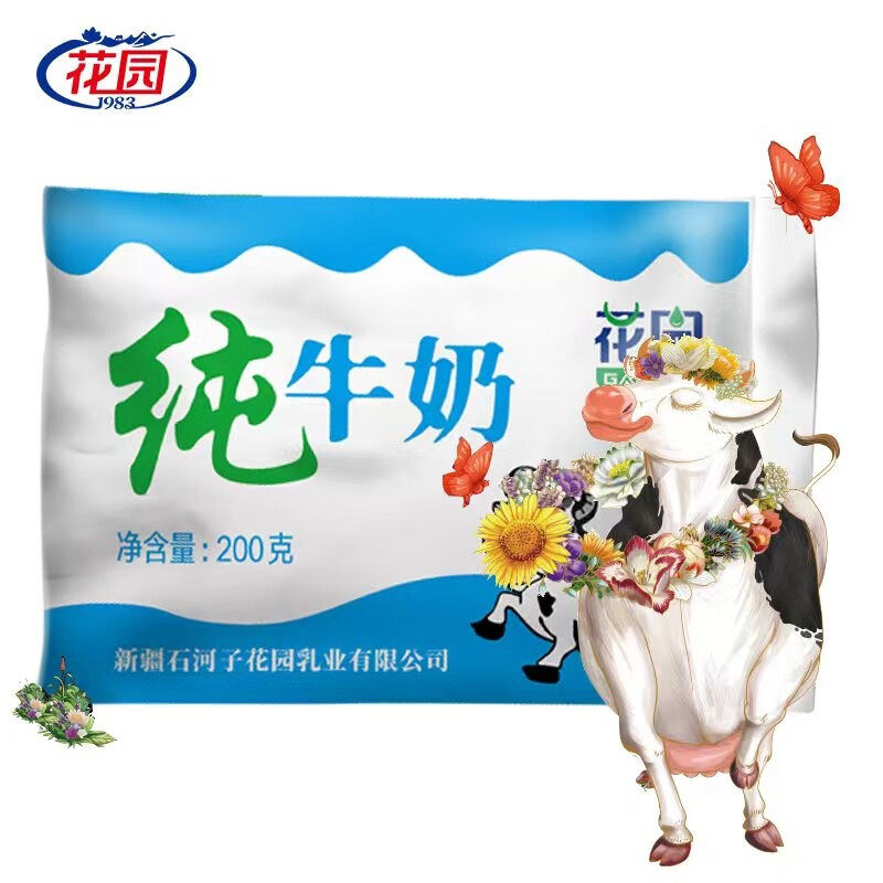 新疆特产花园纯牛奶百利包常温全脂整箱200gx20袋装营养官方正品