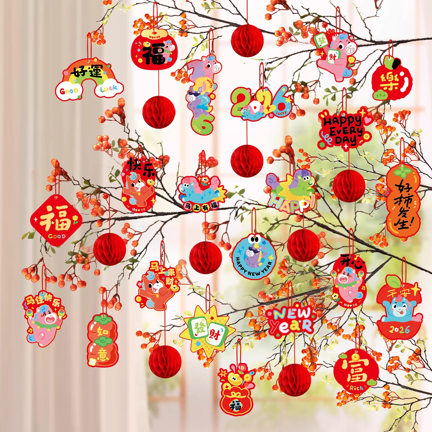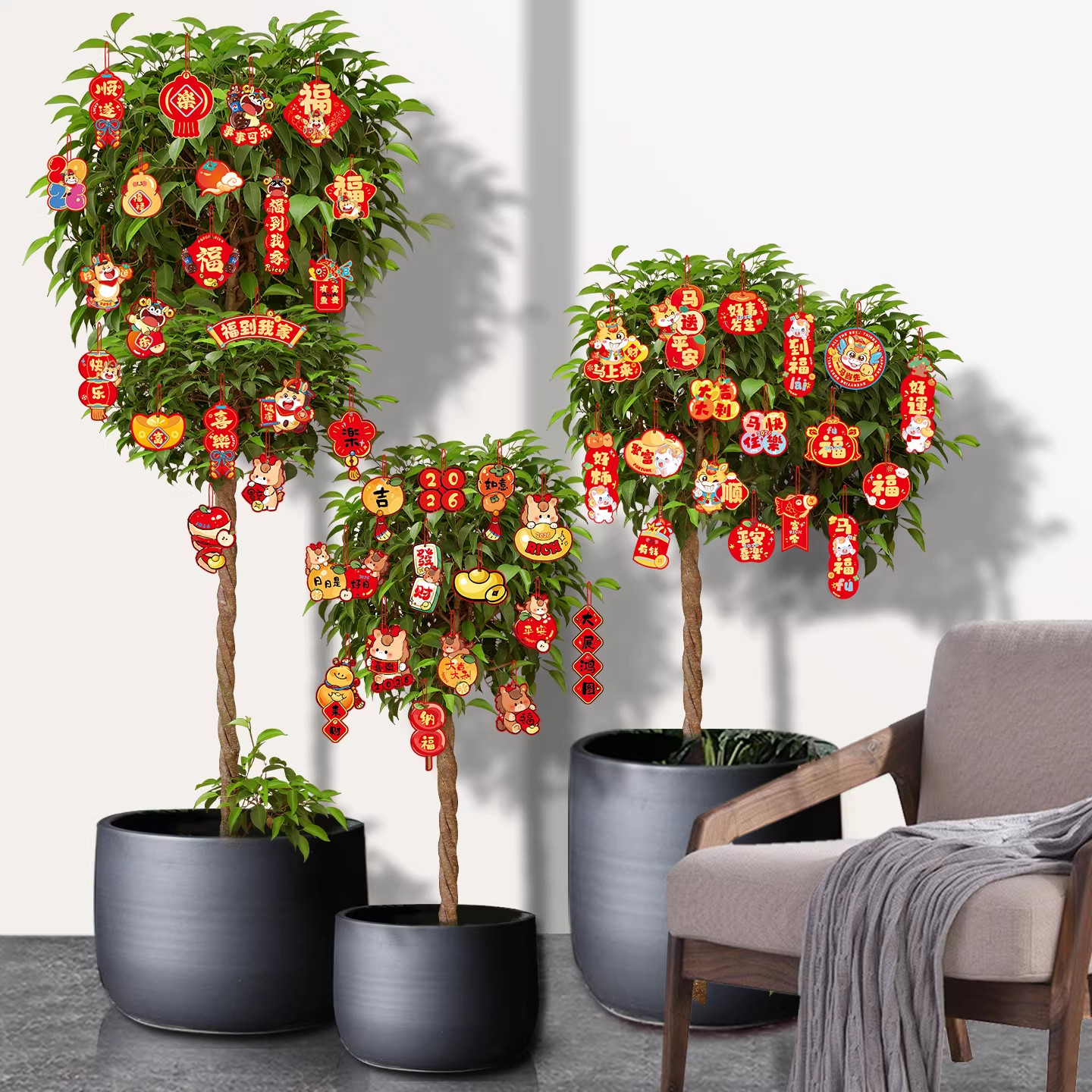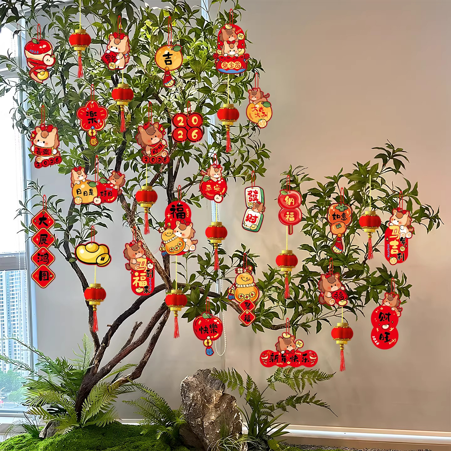 2026马年福字小灯笼挂饰盆栽盆景绿植挂件新年装饰品喜庆氛围布置