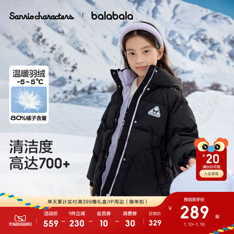【库洛米IP】巴拉巴拉童装儿童羽绒服三丽鸥女童冬装保暖外套流行