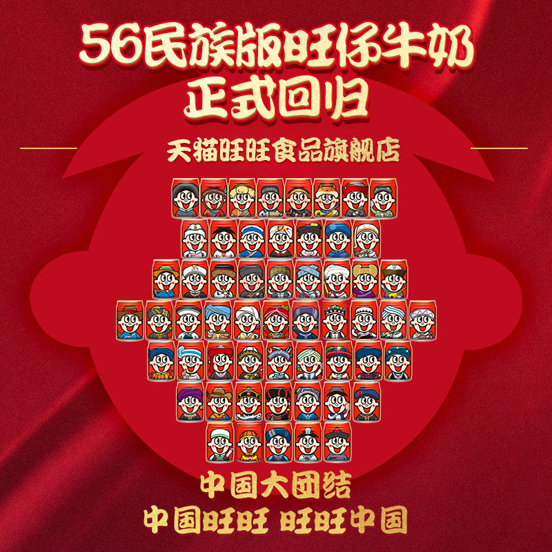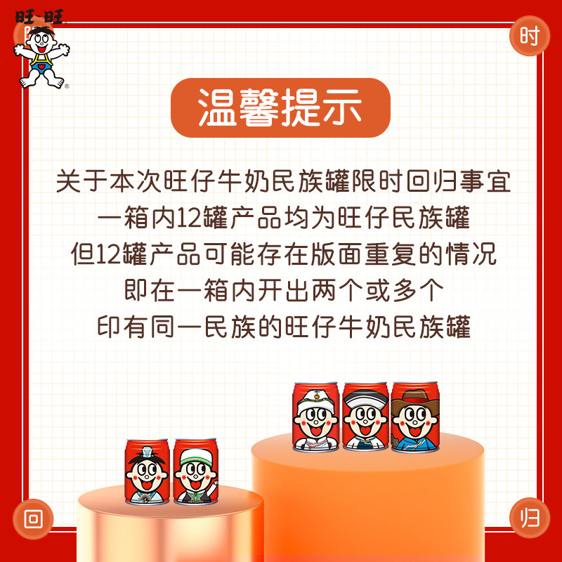旺旺旺仔牛奶245ml*12罐装56民族版学生早餐奶女生送礼礼盒装整箱