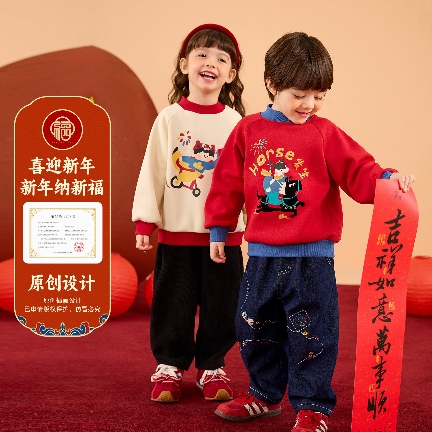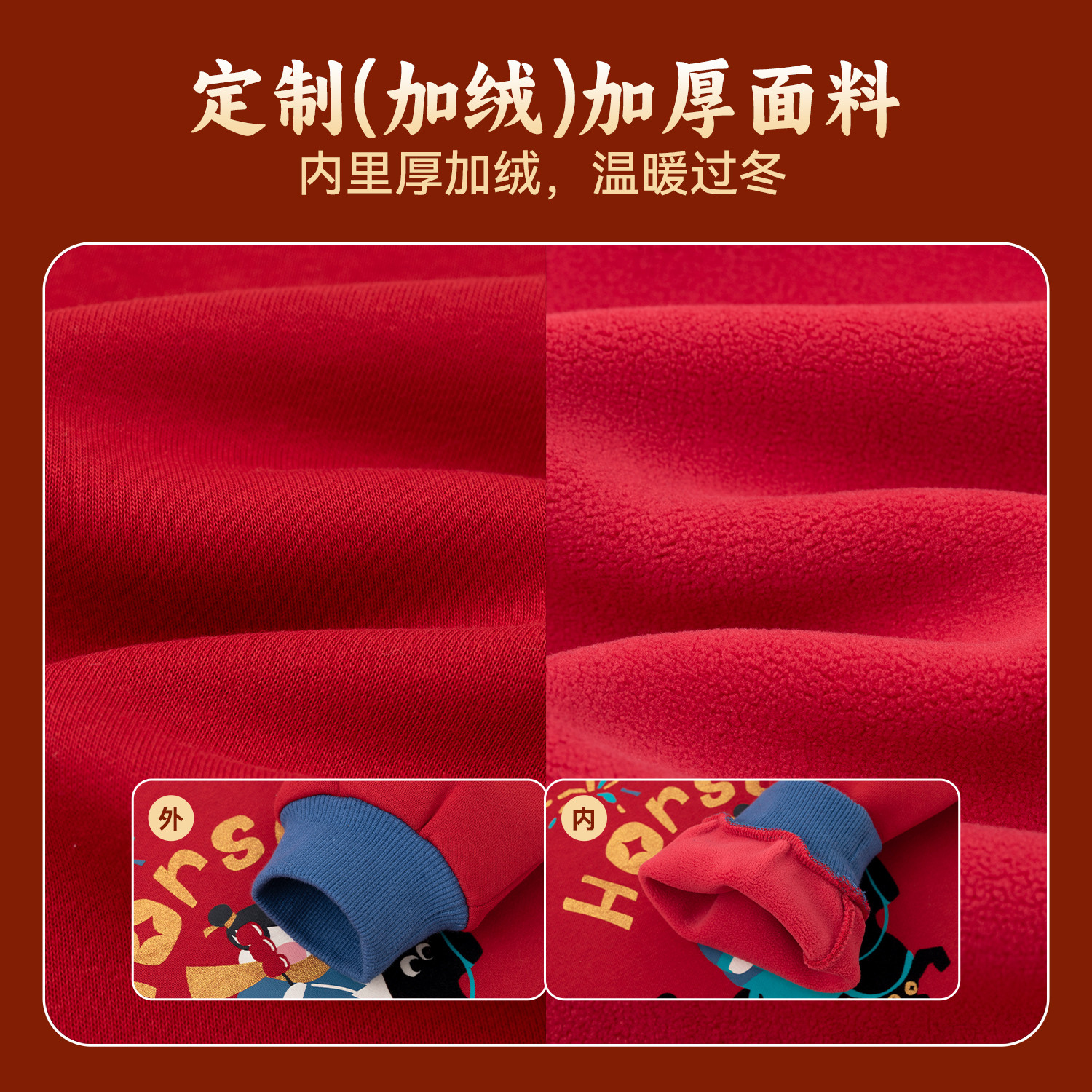 嘟嘟家男童拜年服红色新年装卫衣儿童上衣女童洋气加绒男童演出服
