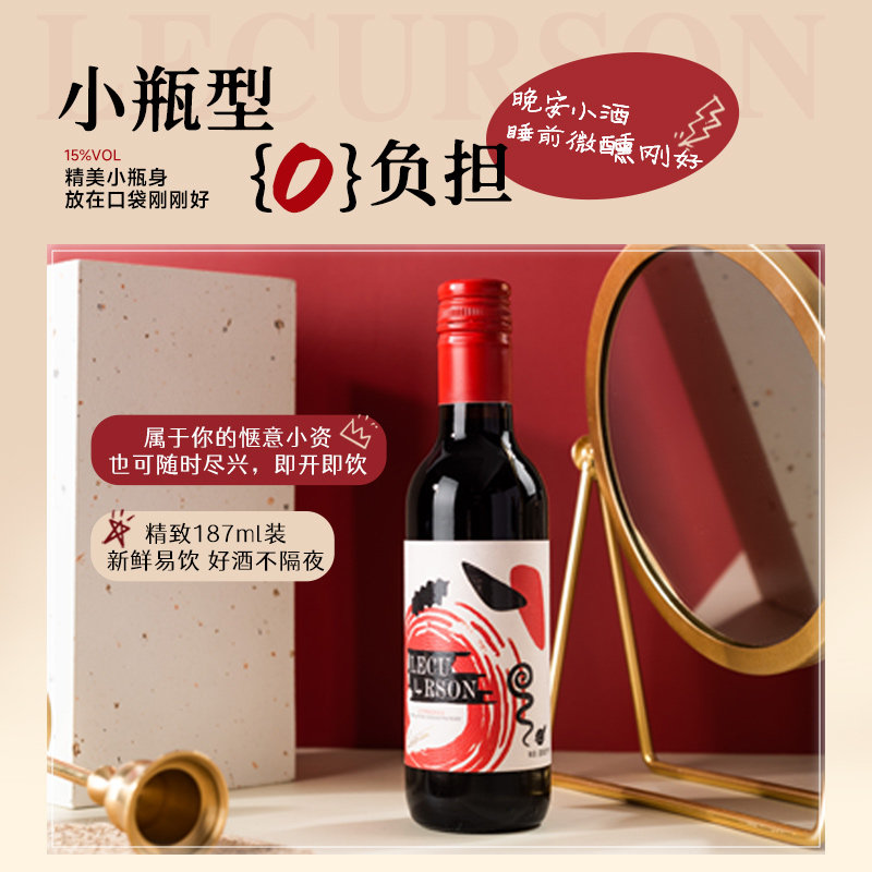 法国红酒干红葡萄酒微醺热红酒小酒原酒进口年货送礼礼盒装