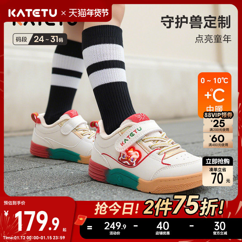 卡特兔儿童运动板鞋2025秋冬新款幼儿园小白鞋加绒棉鞋
