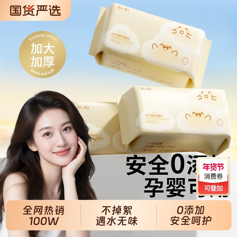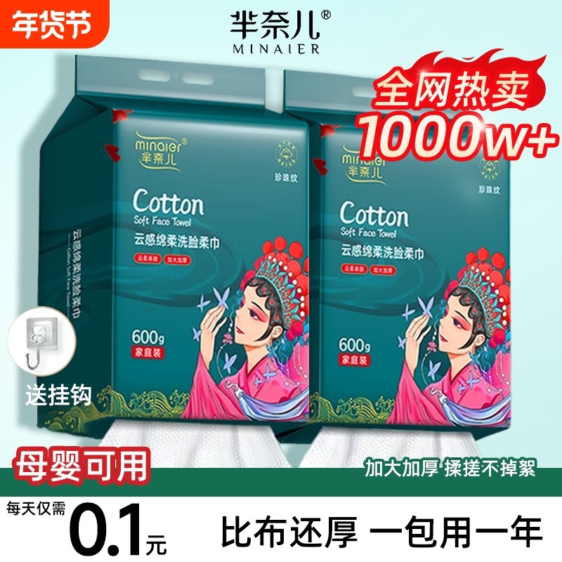 芈奈儿洗脸巾一次性国潮洁面巾600g大包悬挂式加厚母婴可