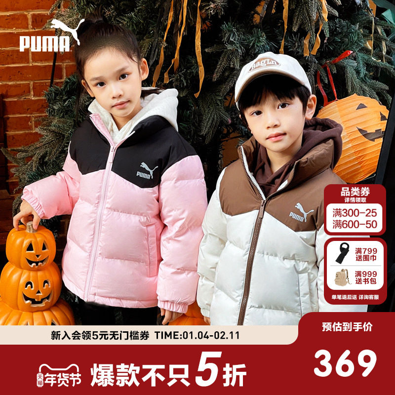 PUMA彪马童装新款儿童羽绒服男童女童轻薄羽绒拉链保暖连