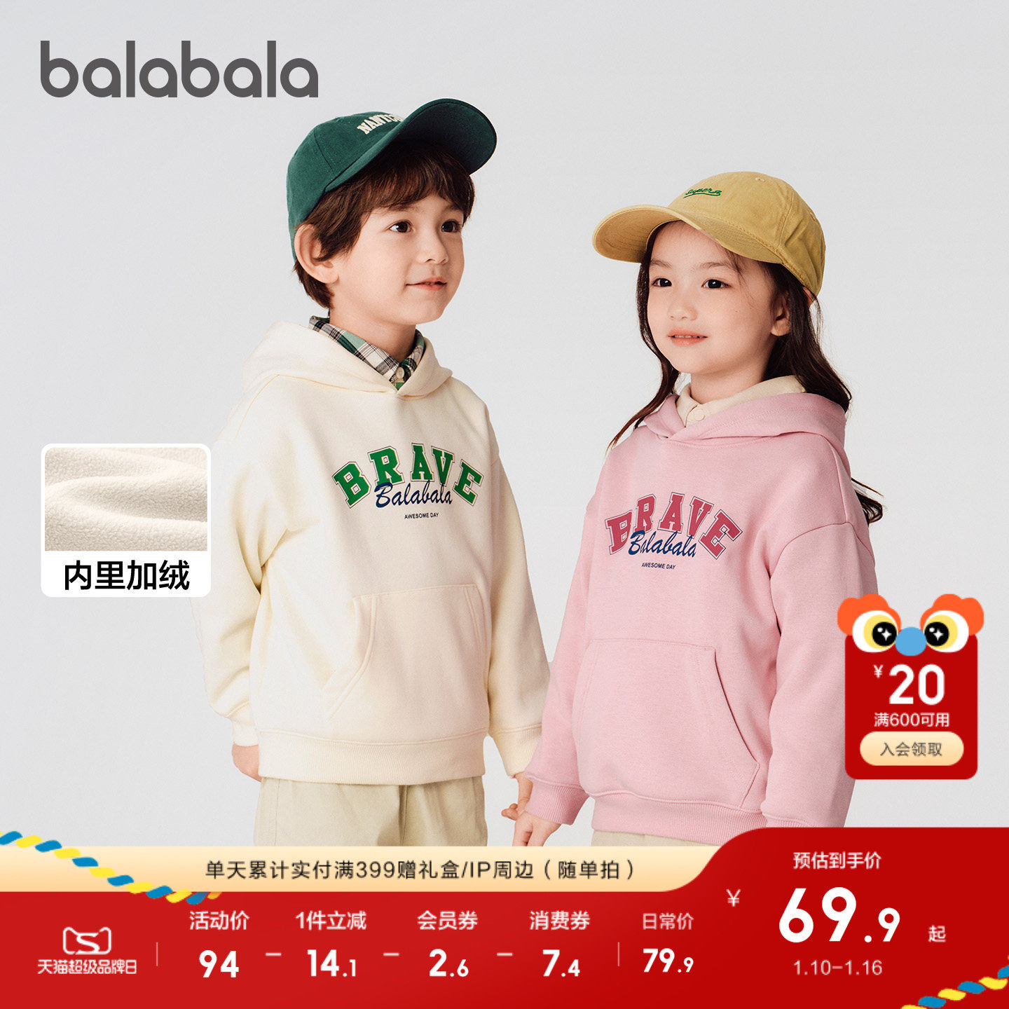 巴拉巴拉童装儿童卫衣男童秋冬女童加绒保暖连帽上衣洋气时尚