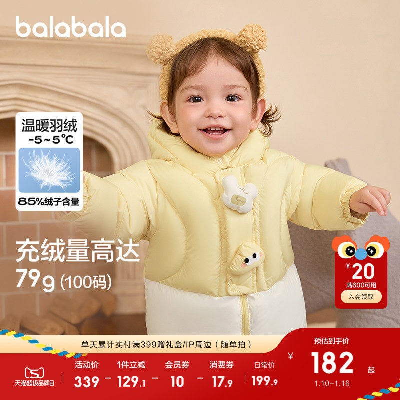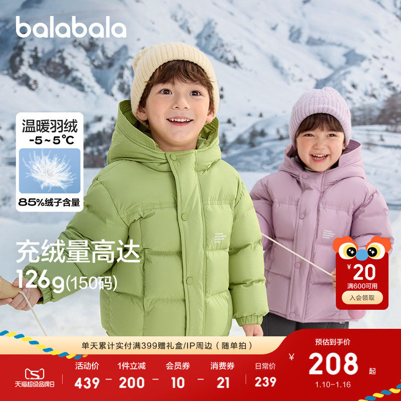 巴拉巴拉童装儿童羽绒服男女童冬装保暖拼接外套上衣舒适户外