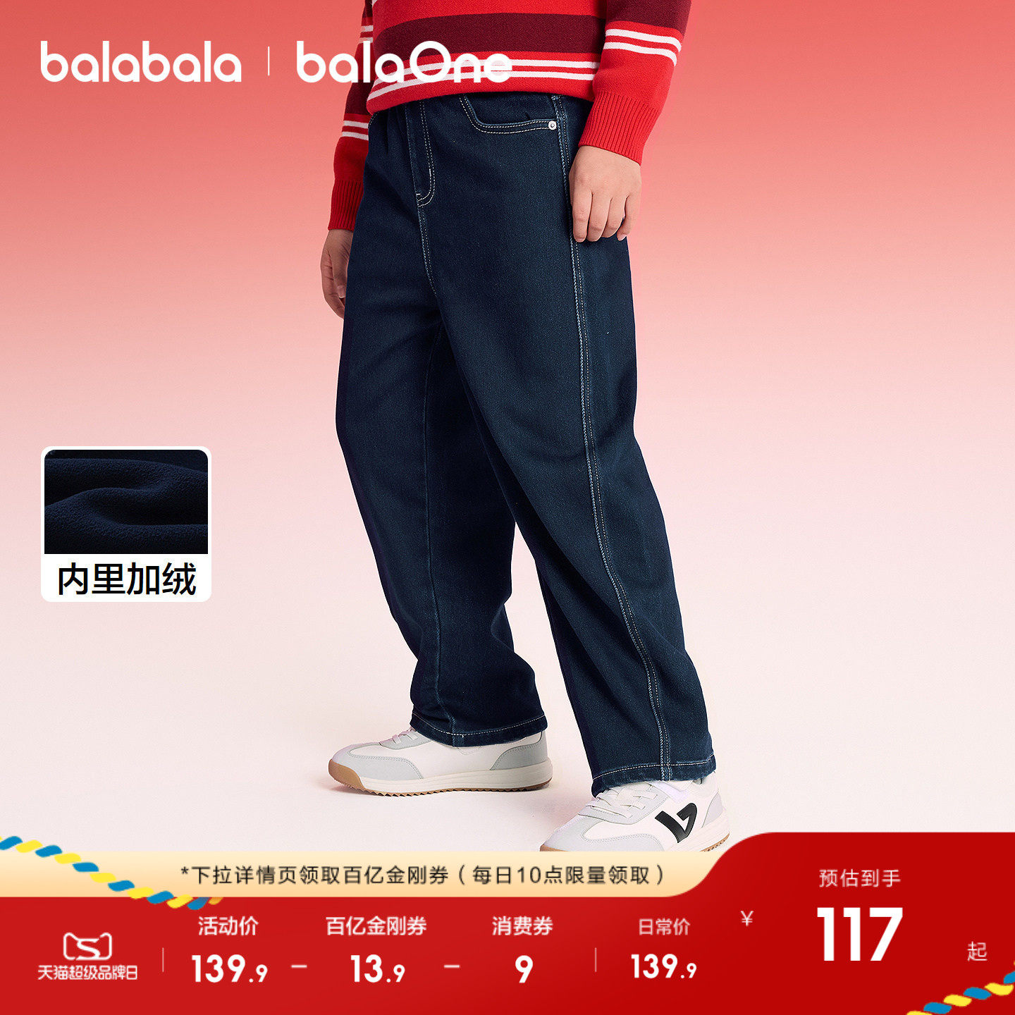 巴拉巴拉童装儿童裤子男童2026新款春秋装加绒拜年服牛仔