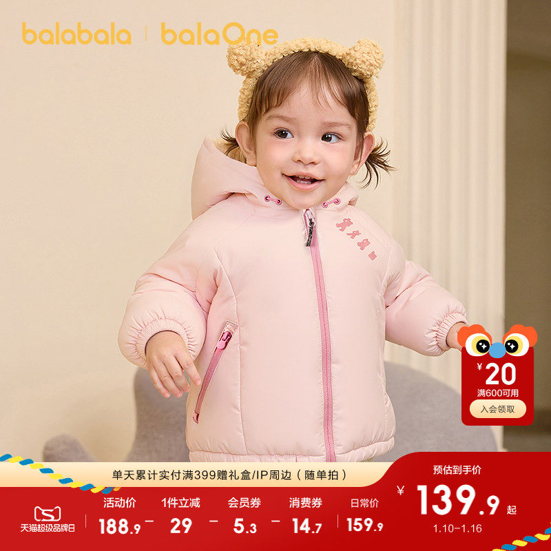 巴拉巴拉童装儿童外套宝宝棉服女童男童新款棉袄2025冬装