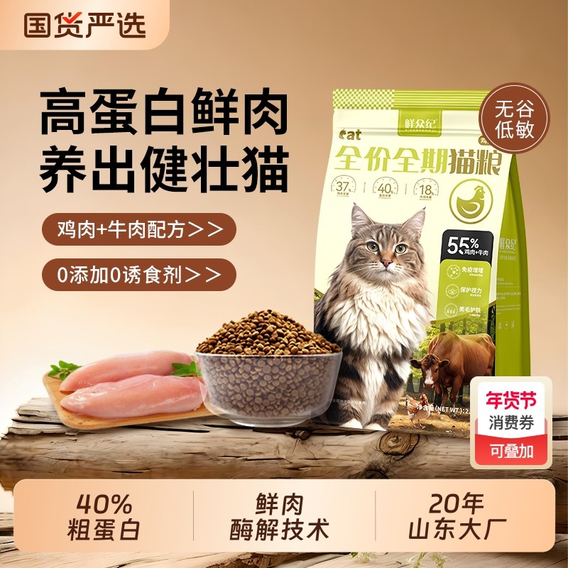 宽福多肉鲜美猫粮鲜肉美毛全价成幼猫高蛋白营养主粮幅肠胃鸡