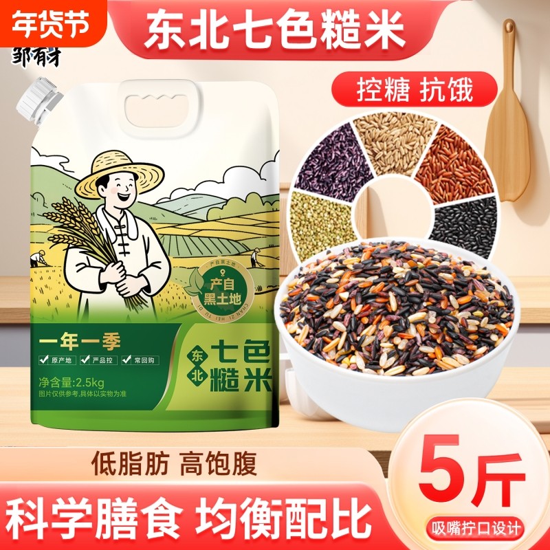 东北七色糙米5斤新米五谷杂粮低脂饱腹糙米饭粗粮组合主食代