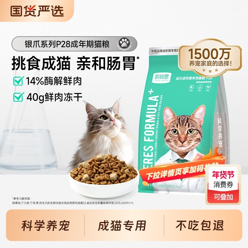 宠熙C42鲜肉配方无谷全价猫粮成猫幼猫冻干猫粮生骨肉双拼