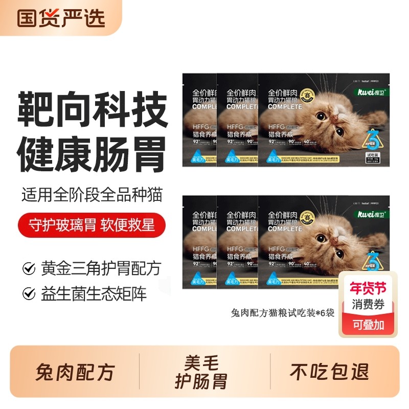 库卫猫粮兔肉美毛护肠胃成猫幼猫低敏猫粮营养防掉毛试吃装6