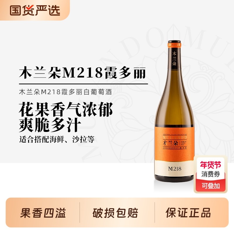 木兰朵M218霞多丽白葡萄酒宁夏贺兰山东麓国产干白葡萄酒