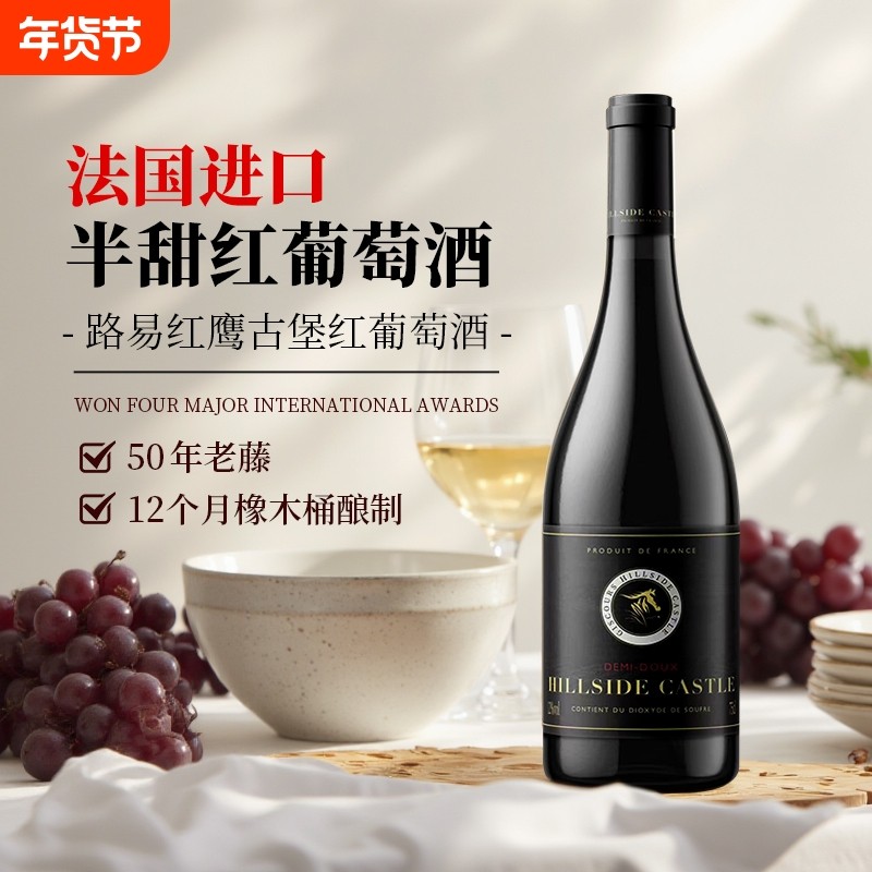 【法国进口】酒庄直供红葡萄酒半甜型果酒冰酒12度女生微醺