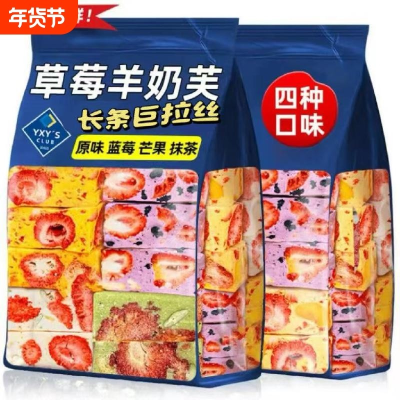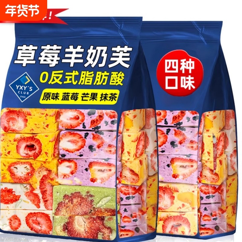 草莓羊奶芙雪花酥网红零食休闲食品小吃美食好吃糕点心拉丝芒