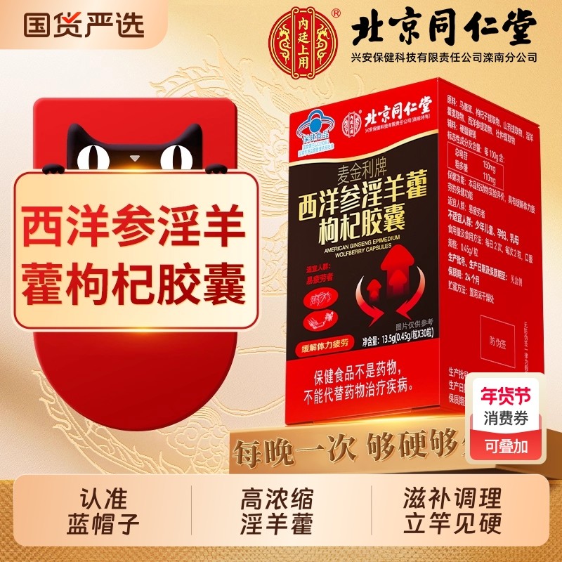 北京同仁堂西洋参淫羊藿枸杞胶囊马鹿茸人参滋补保健男性疲劳