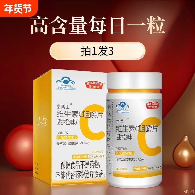 亨博士天然维生素C咀嚼片VC片维C补充维生素保健品正品官
