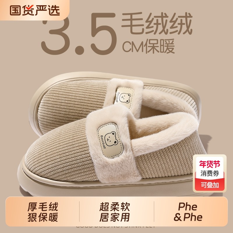 三利棉拖鞋女士冬季2025新款情侣居家室内防滑防臭秋冬毛