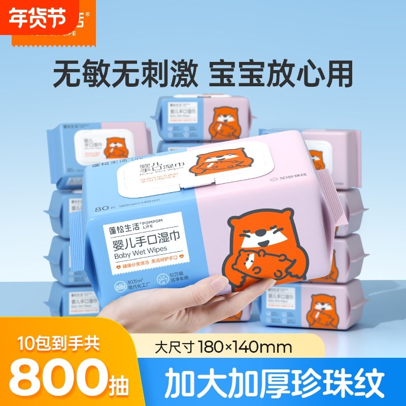 40抽婴儿湿巾宝宝手口屁母婴专用湿纸巾大包温和带盖抽纸