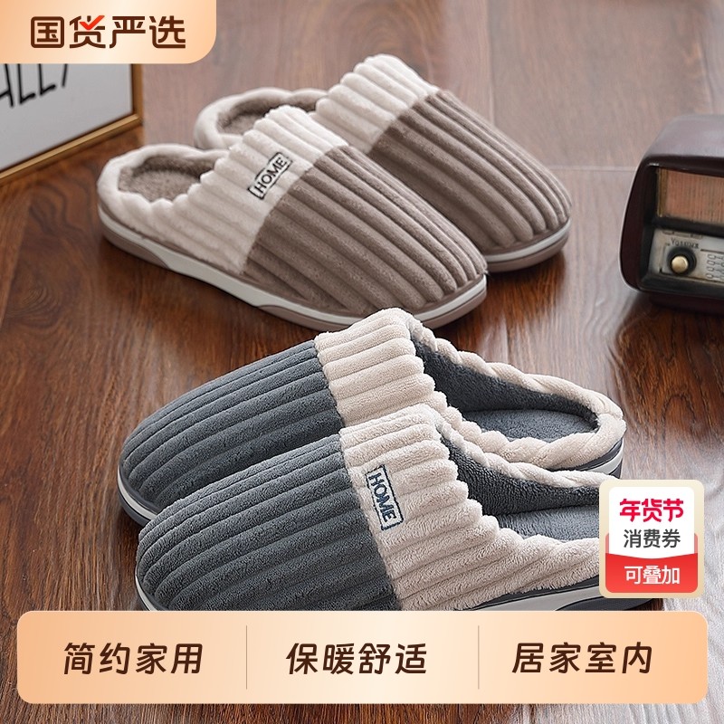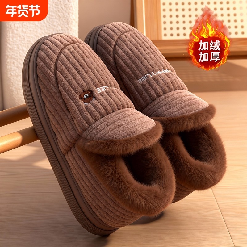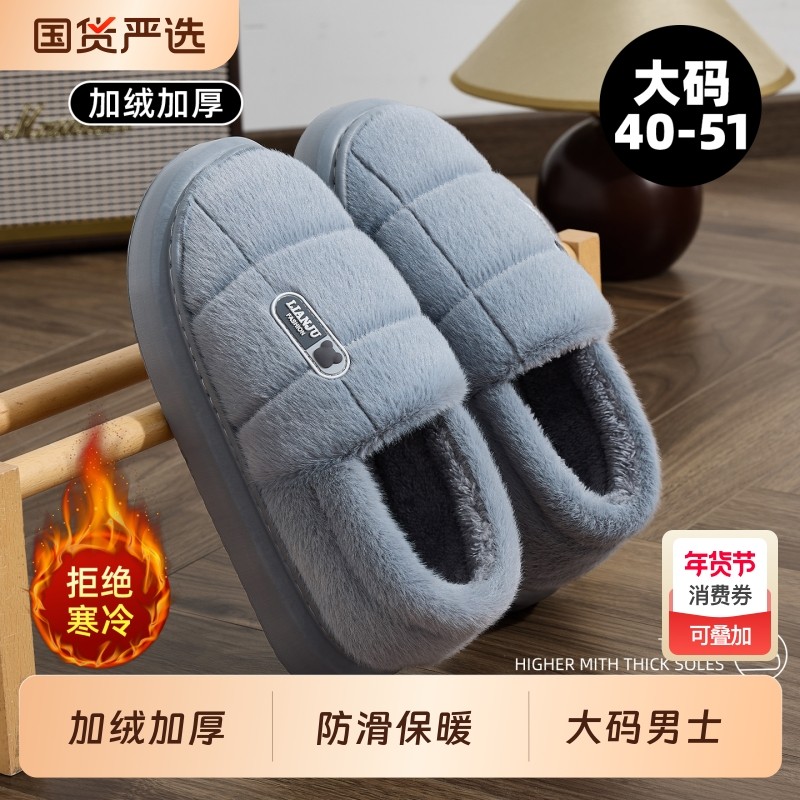 大码防滑棉拖鞋男冬季2025新款室内居家加厚静音保暖老人