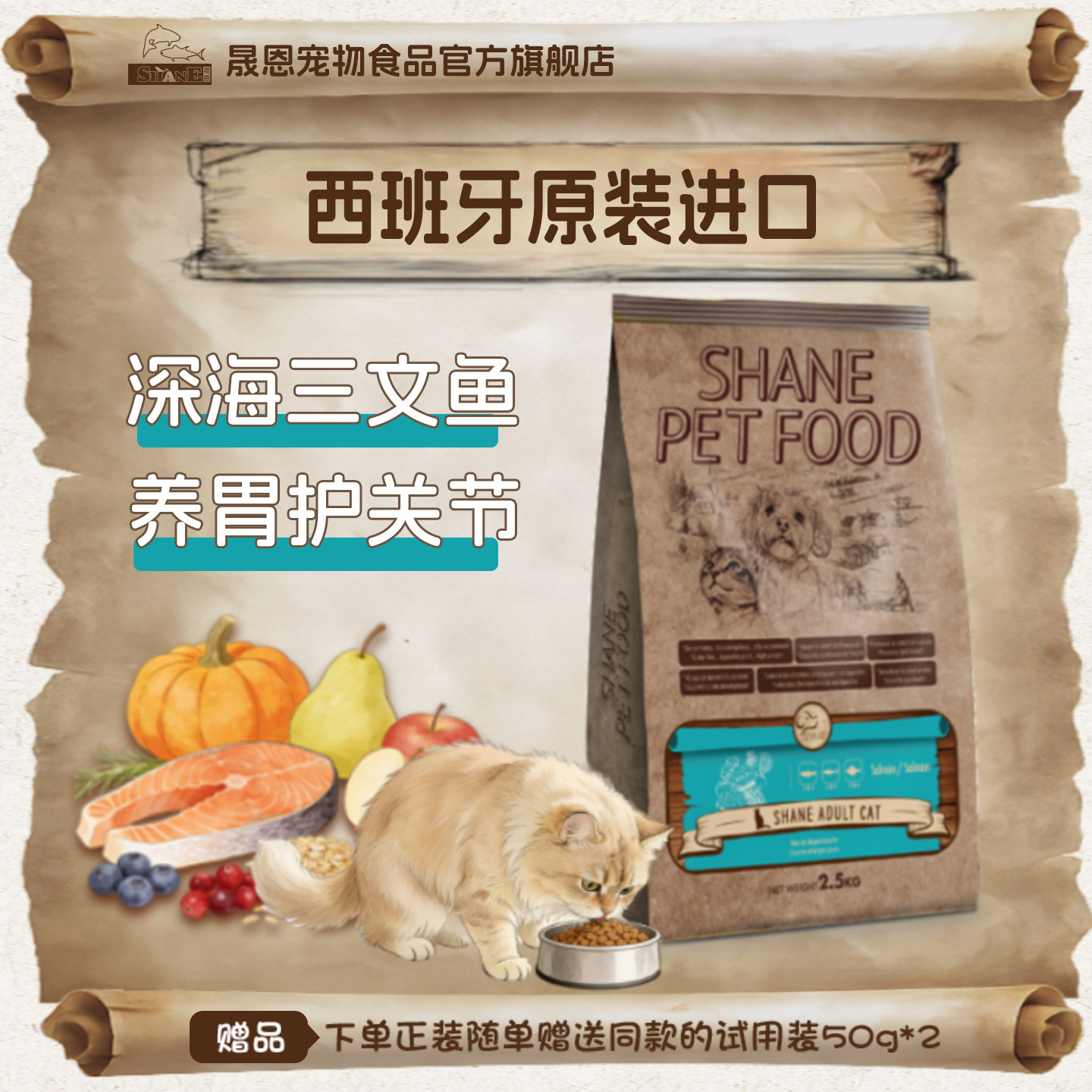 晟恩西班牙进口三文鱼成猫粮低敏全价肉味老猫咪通用无谷专用