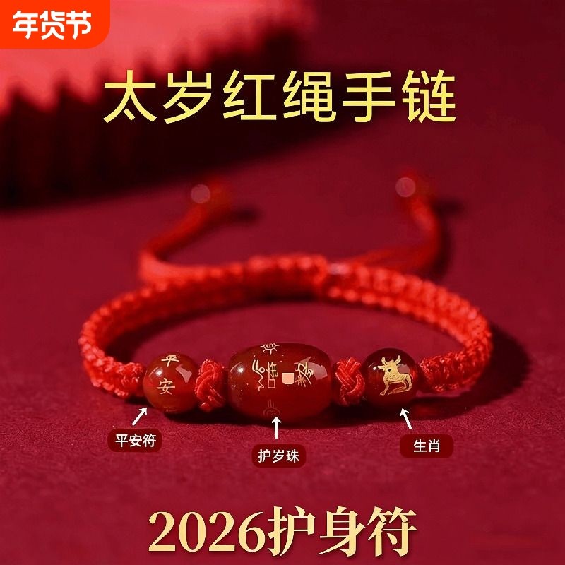 2026马年太岁红绳手链本命年属马蛇鼠牛兔饰品吉祥物手绳
